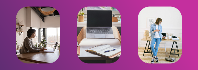 Remember that even though you’re working from home it’s still important to create a professional environment, so think about where your colleagues or clients will see when you’re on camera. Don’t overthink things, it doesn’t need to be complex. A plain wall with a piece of art on it or against it will look appealing on camera and you would never know if the rest of the house is falling apart!